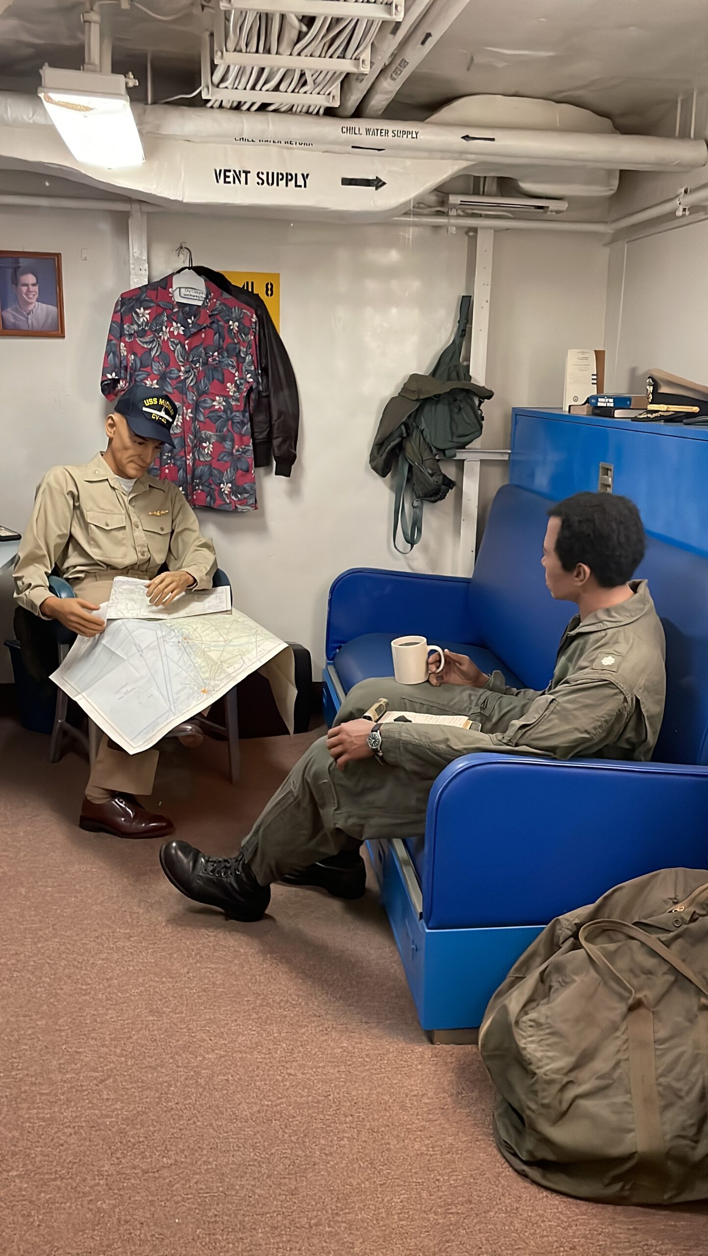 3.甲板下層 (Below Decks):迷宮般的「海上城市」只停留在飛行甲板上拍照,務必走入船艙深處的下層甲板 (Below Decks),這裡才是『海上移動城市』的靈魂所在。穿梭在如迷宮般的狹窄走道間,你將親眼見證當年 4,000 多名水手的真實生活:從供應萬人伙食的巨型廚房 (Galley)、擁擠壓迫的士兵臥鋪 (Berthing),到設備一應俱全的海上醫院 (Sick Bay) 與禁閉室 (The Brig)。這種充滿生活感與幽閉氛圍的體驗,能讓你深刻體會海軍服役的艱辛,是比戰鬥機更真實的歷史衝擊。」
